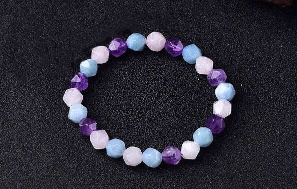 스타 컷 면 처리된 천연 아쿠아마린 자수정 로즈 쿼츠 탄성 7-8mm 스트레치 스트링 팔찌