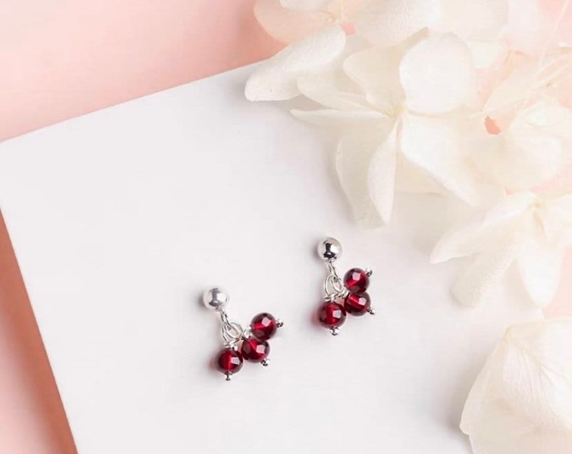 스틸 3mm 작은 미니 가넷 천연 보석 귀걸이