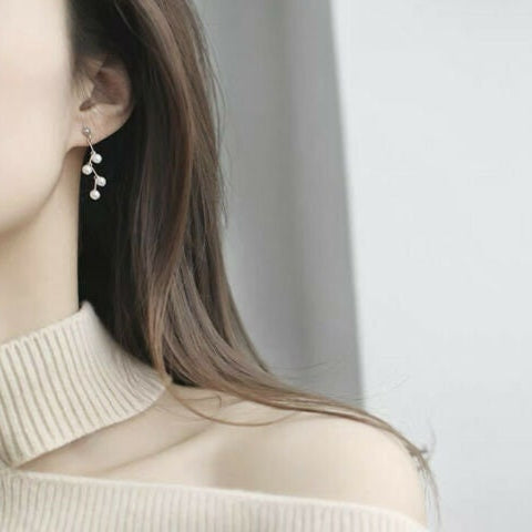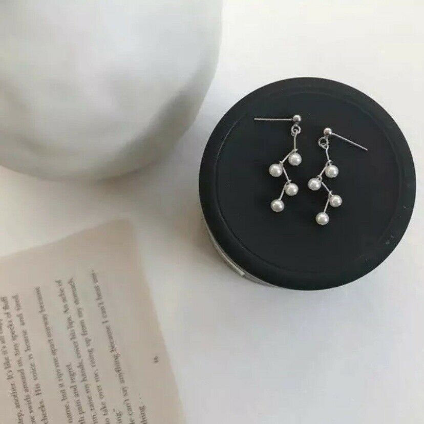 스틸 패션 한국 유리 작은 진주 5-6mm 드롭 꽃 귀걸이