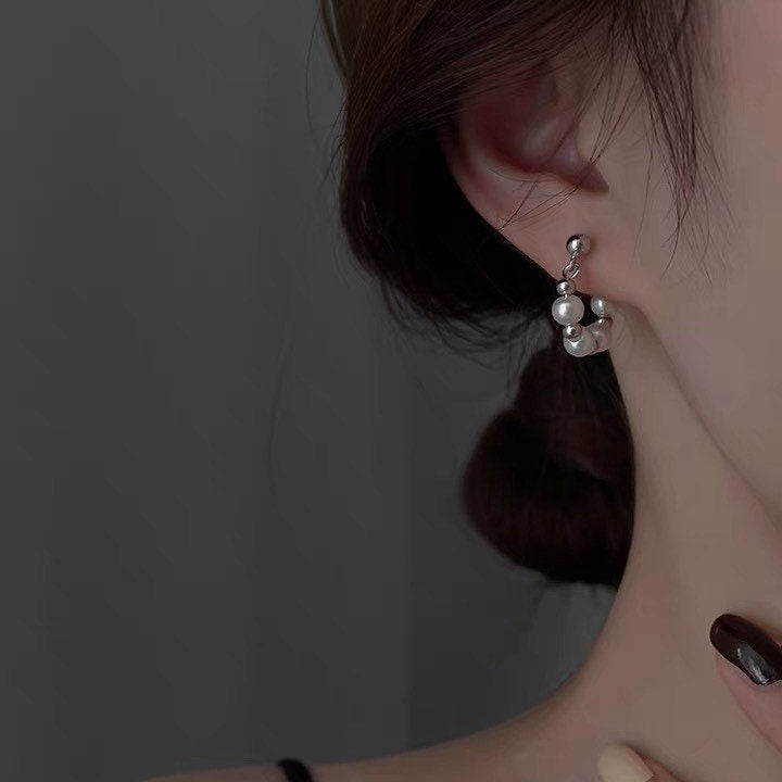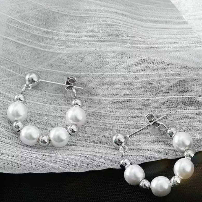스틸 한국 패션 5mm 크리스탈 진주 스와로브스키 요소 후프 스터드 귀걸이