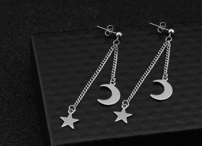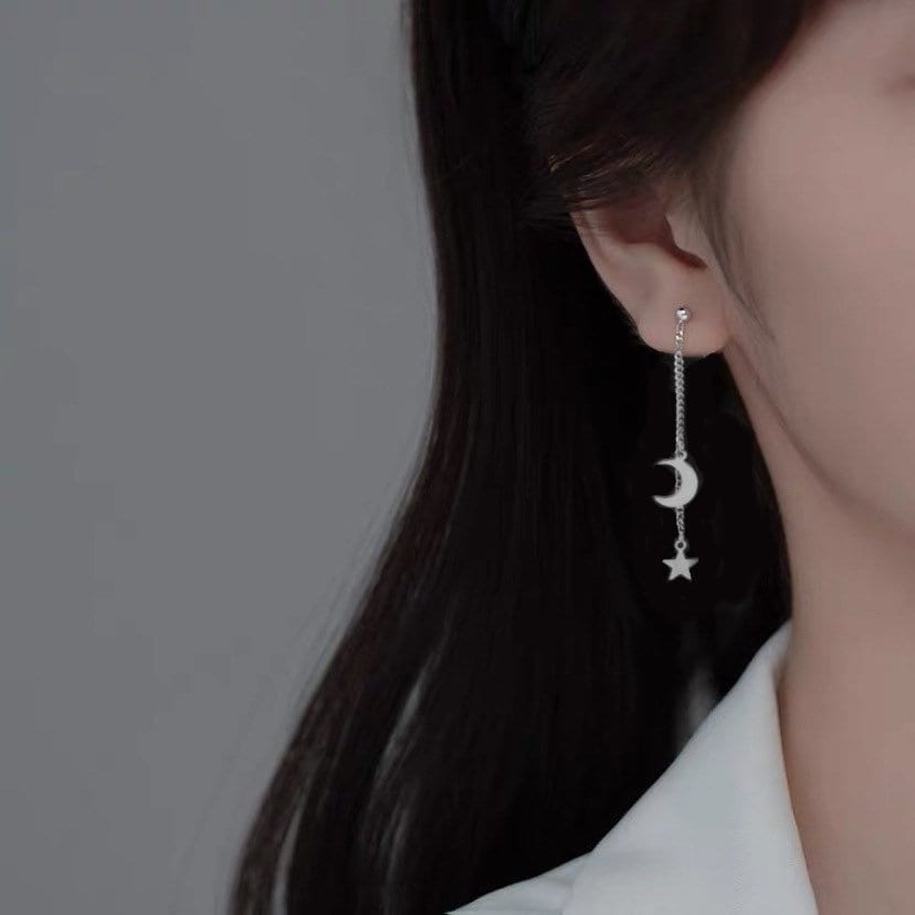 스터드/후프 한국 펑크 체인 스틸 달과 별 귀걸이 7cm