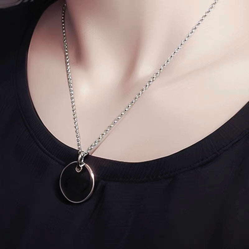 This necklace features a 15mm circle blank charm made of surgical steel, giving it a durable and hypoallergenic quality. The necklace is 18 inches in length and can be adjusted to 16 inches, secured with a lobster claw clasp. The design is simple yet versatile, perfect for adding personalized charms or pendants to create a unique accessory. Ideal for everyday wear, this necklace offers a sleek and modern style that can complement various outfits.