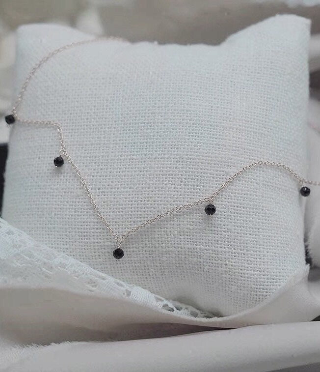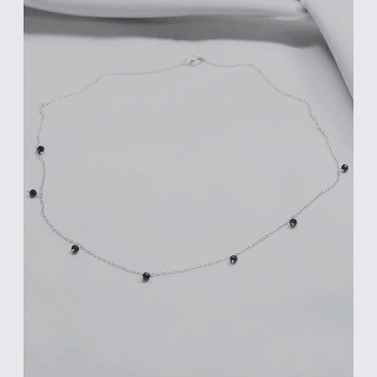 써지컬 스틸 4mm 블랙 토르말린 연마 비즈 목걸이 16-18인치 스프링 링