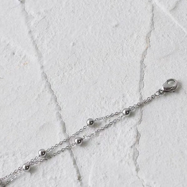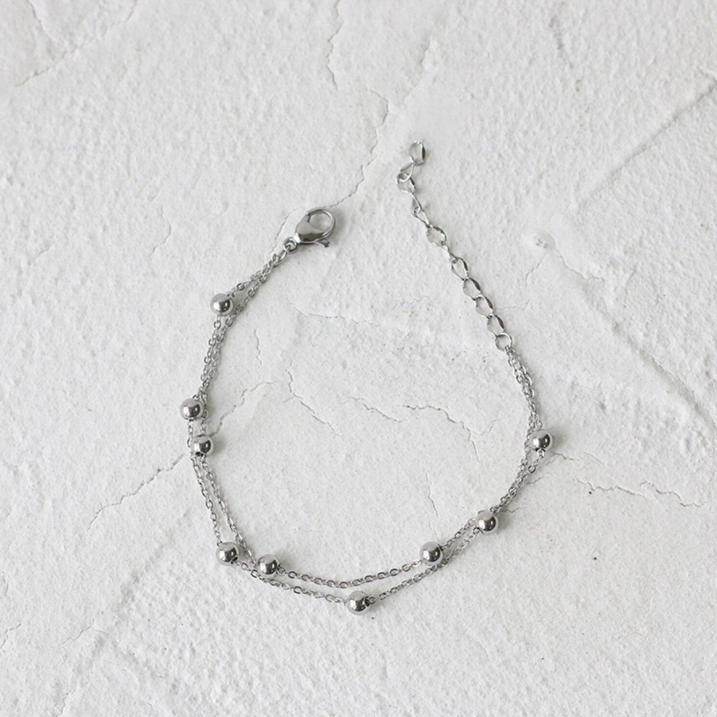 서지컬 스틸 더블 3mm 비드 케이블 체인 팔찌 6/7/8인치 익스텐더 랍스터 클로 포함